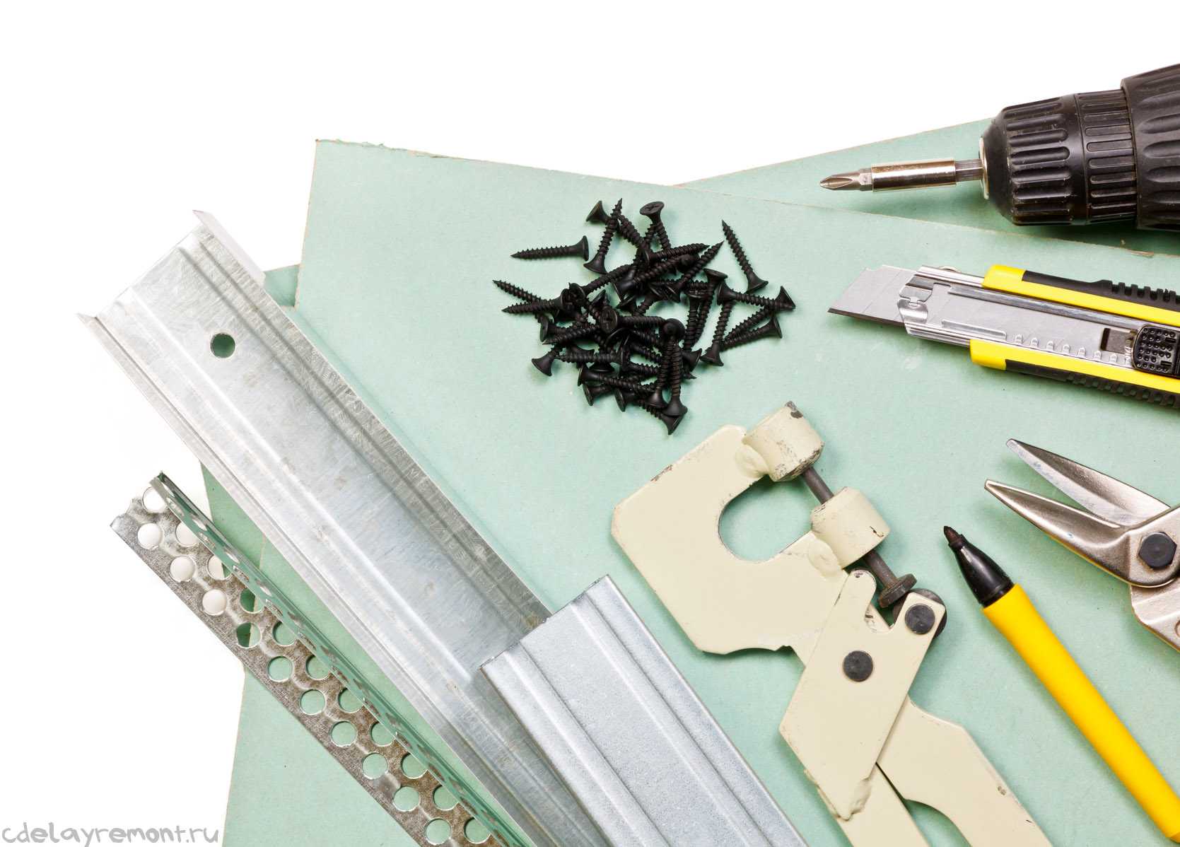 Для крепления гипсокартона могут потребоваться следующие инструменты и материалы: