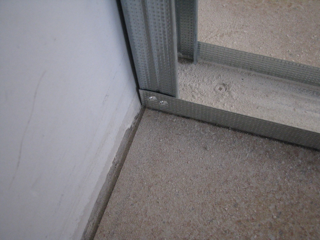Итак направляющие к полу прибиты, теперь выставляем направляющие на стенах.