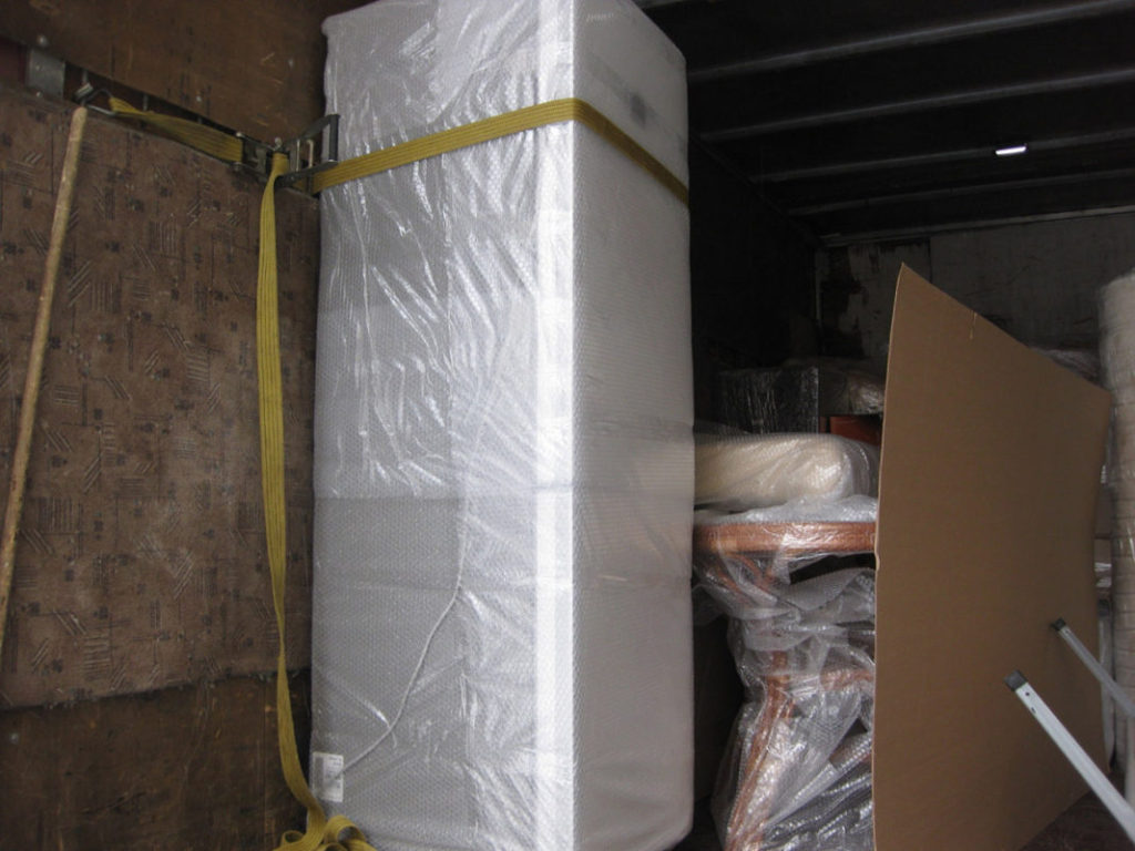 - Приобретите специальный упаковочный материал (воздушно-пузырьковую пленку) и обмотайте ваш холодильник в несколько слоев. А возможно у вас сохранилась заводская упаковка и пенопласт — это будет лучшее решение.