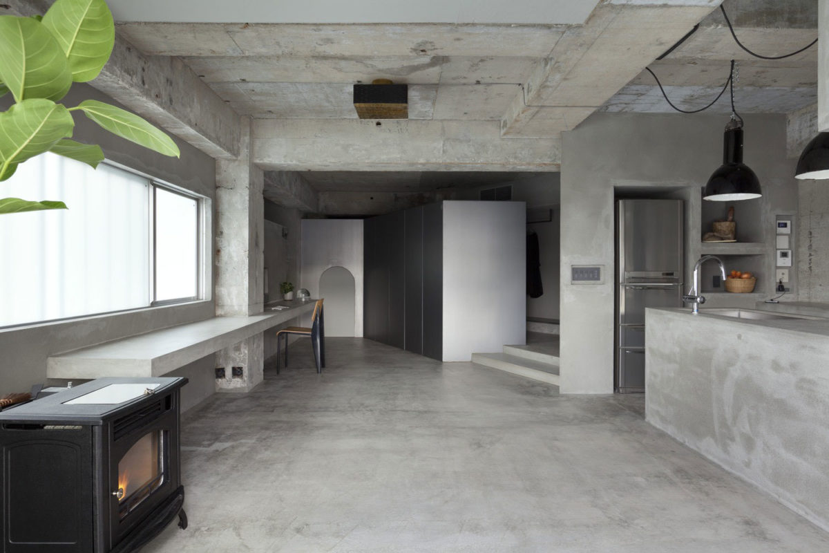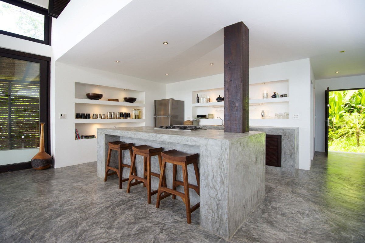 Гораздо выгоднее сделать пол на кухне из бетона. Этот стильный вариант подойдёт не только для Лофта. Если с помощью шлифовальной машинки придать ему блеск, то он вполне дополнит интерьеры всех разновидностей минимализма.