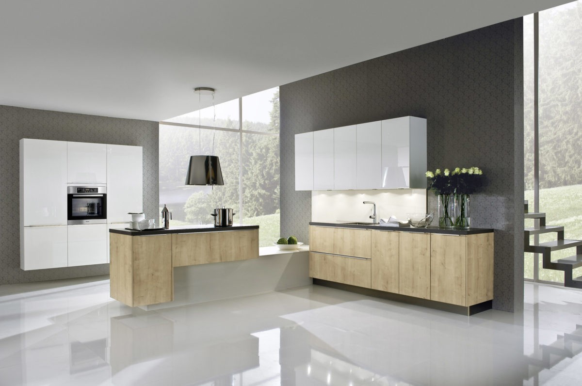 Напольное покрытие из дерева — не лучший, но возможный вариант для кухни. Трехслойная паркетная доска устойчива к воздействию влаги, но только при умеренных перепадах. Что касается массивного паркета, то водостойкость еще меньше из-за природного свойства древесины впитывать и отдавать избыточную влагу. По дереву приятно ходить босиком: шикарный выбор для спальни или гостиной, но для кухни нужен более практичный материал.
