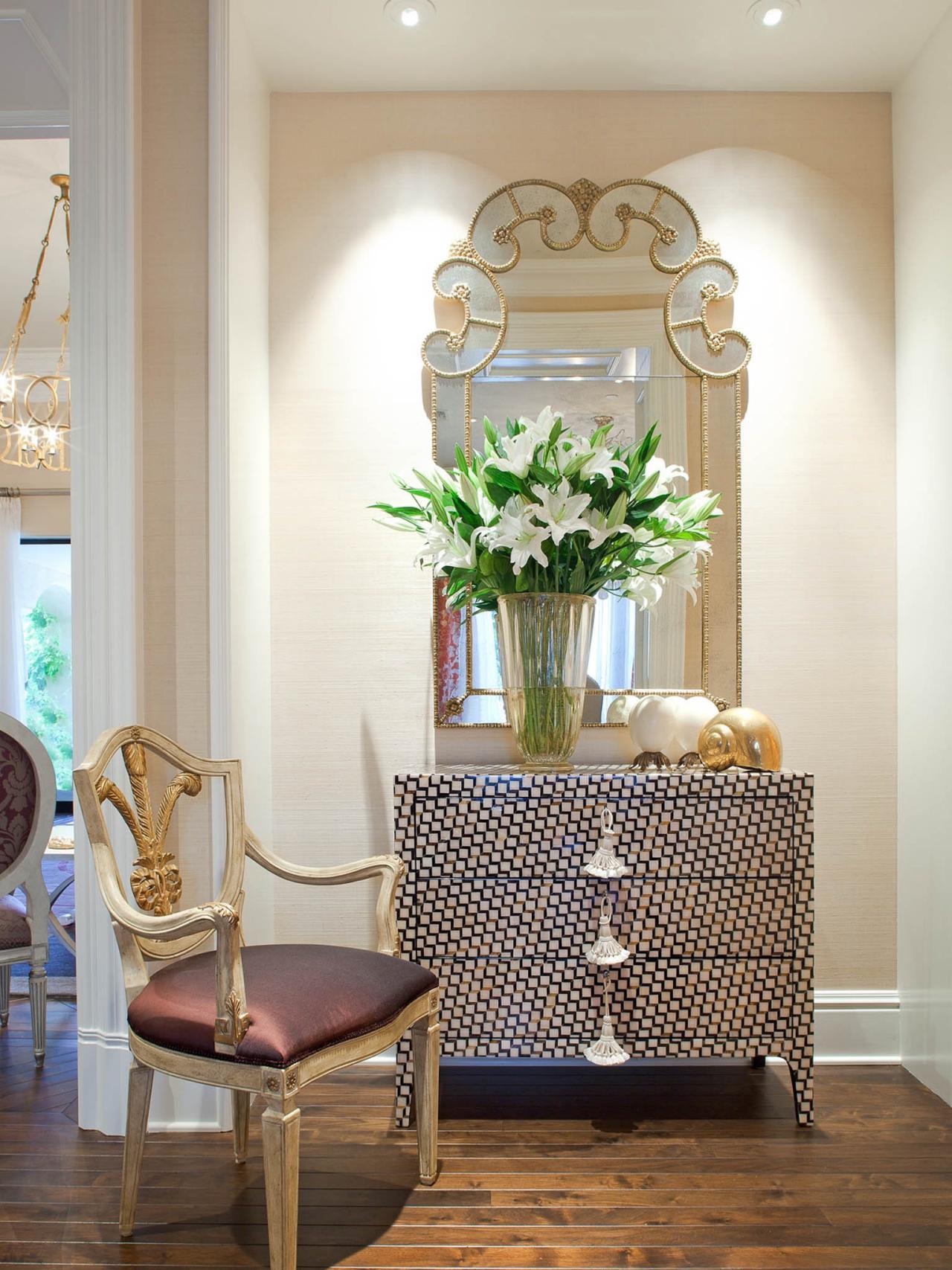Декор прихожей включает в себя и применение зеркал. Вот смотрите, как это происходит.