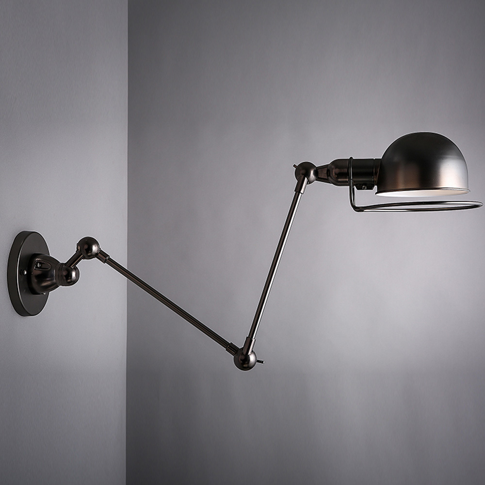 Дизайн настольной лампы на ломающемся кронштейне ограничен лаконично-утилитарными формами. Конструкция сложнее, чем у лампы на стойке прежде всего ввиду требования обеспечения электробезопасности, см. далее. Возможности оперативной регулировки света в рабочей зоне широкие и по величине освещаемой площади, и по ее освещенности при неизменном спектре.