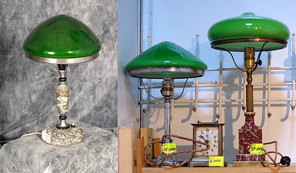 И обратите внимание на их настольные лампы. Правда, похожи на ту, что слева на рис? Которая в СССР «широким слоям населения» не продавалась? И которая породила крылатое выражение «зеленая лампа»?