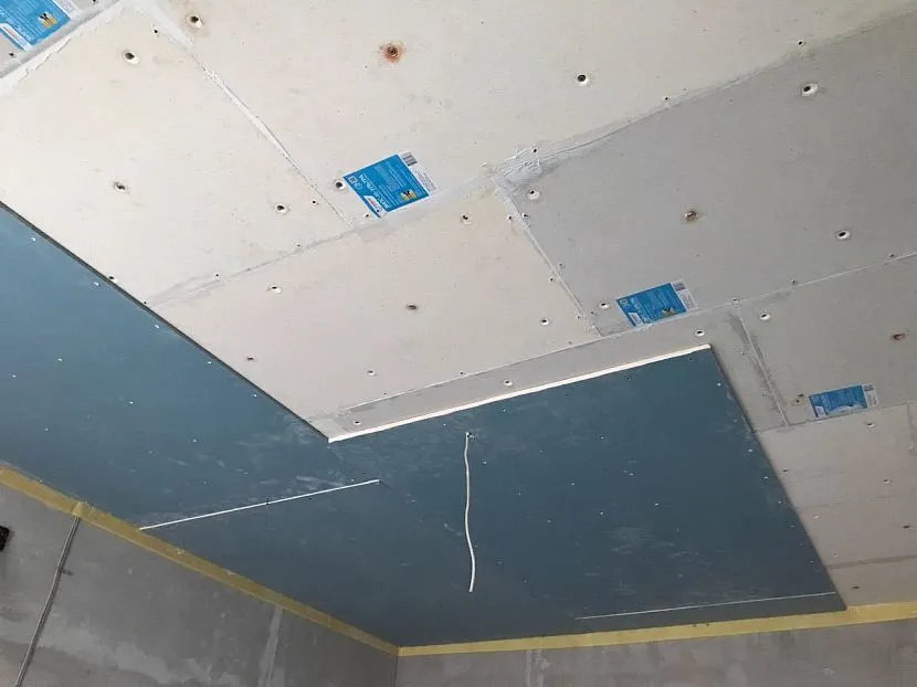 Также для создания бескаркасной шумоизоляции потолочного покрытия рекомендуется применить самоклеящуюся мембрану. После предварительного нанесения грунта она крепится на обработанную поверхность в качестве первого слоя. Затем укладываются листы ГВЛ, а на заключительном этапе – гипсокартон.