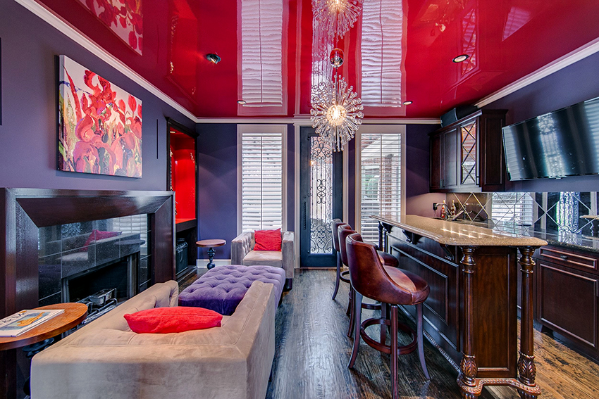 - Красный. Побуждает к действию. Больше подходит для целеустремленных и активных людей. Но этот цвет на всей поверхности потолка использовать не рекомендуется. Лучше применять его для создания ярких акцентов.