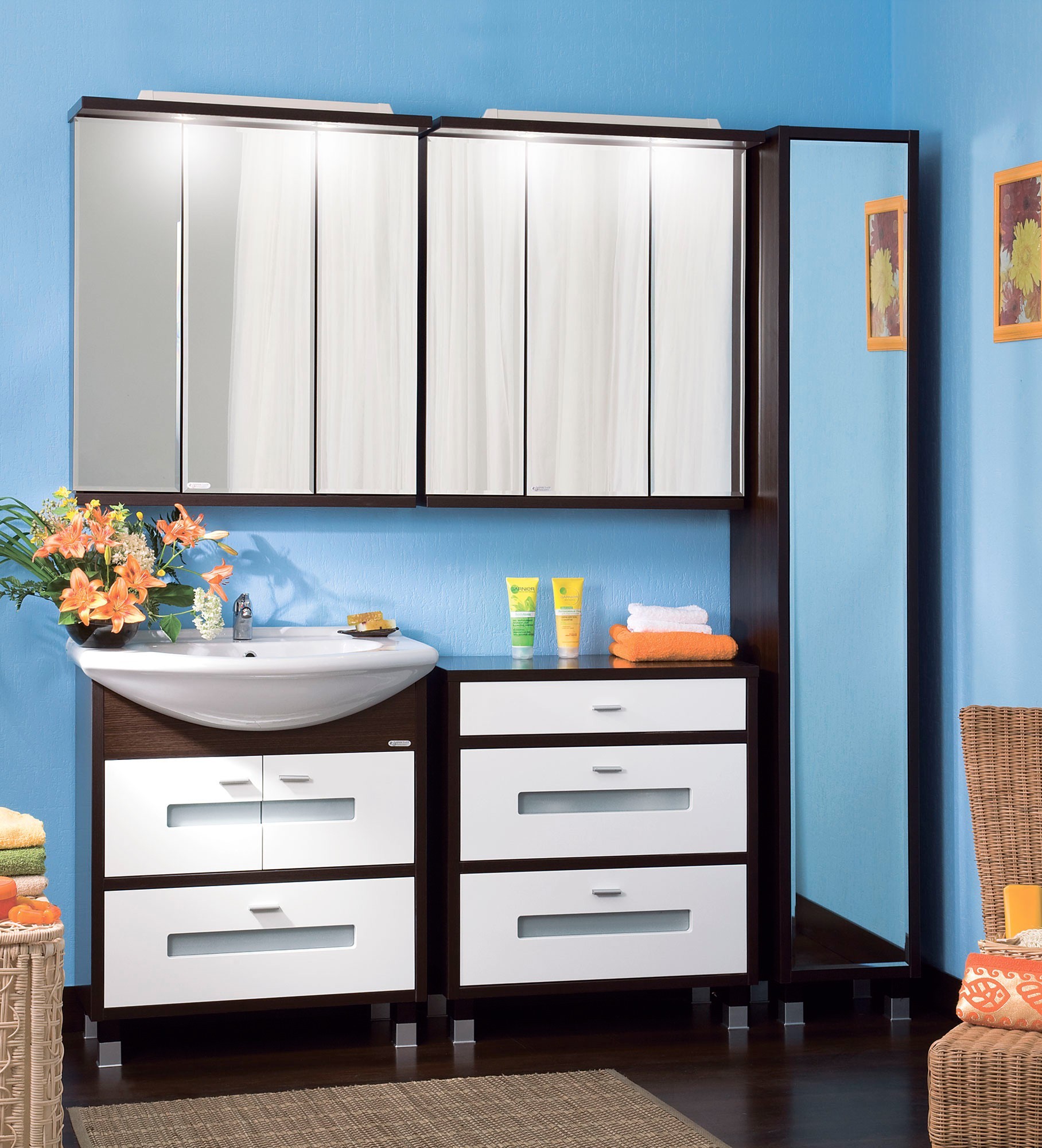 Выбирается элемент под обстановку вашей ванной, важно найти то, что органично впишется в интерьер и будет отвечать всем вашим потребностям. Чаще всего конструкция совмещена с зеркалом или же дверцы сделаны в виде зеркал, что очень удобно;