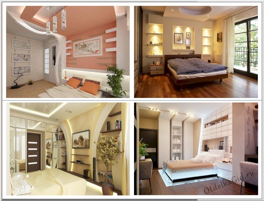В спальнях ниши обычно размещают либо у изголовья кровати, и тогда они исполняют роль прикроватных тумбочек и полочек, либо напротив кровати, как оригинальный декор комнаты