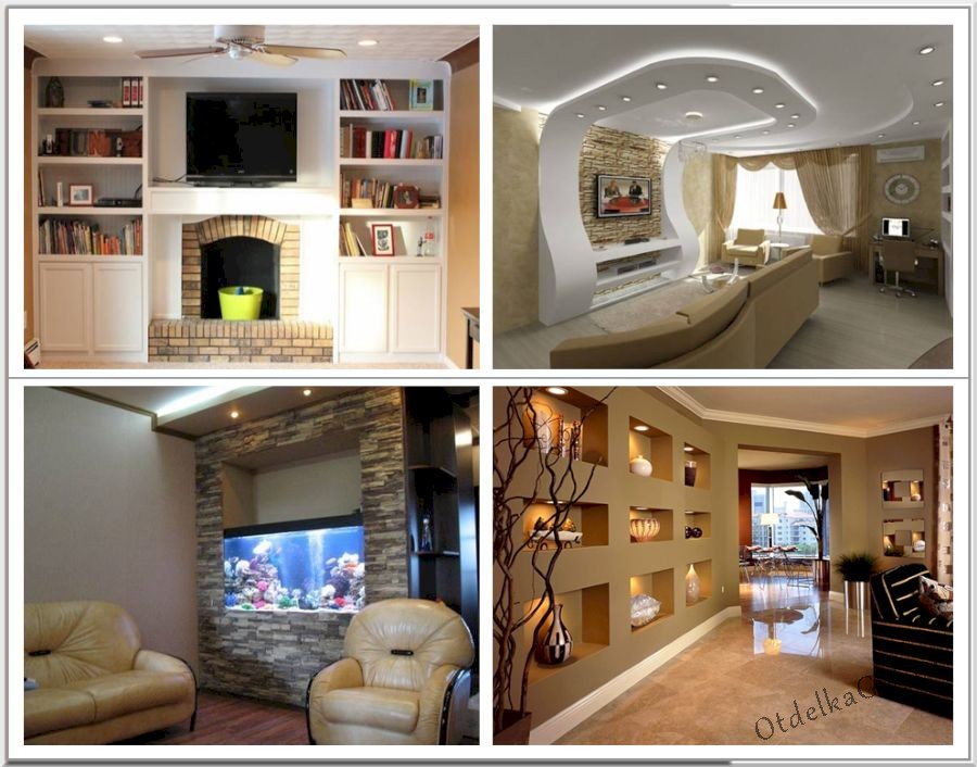 Вариантов оформления ниш очень много. Ознакомиться с различными примерами можно по фото ниш в гостиной. На основе примеров можно разработать собственную концепцию обустройства и декорирования ниш, которые будут выступать и декоративными, и функциональными элементами.
