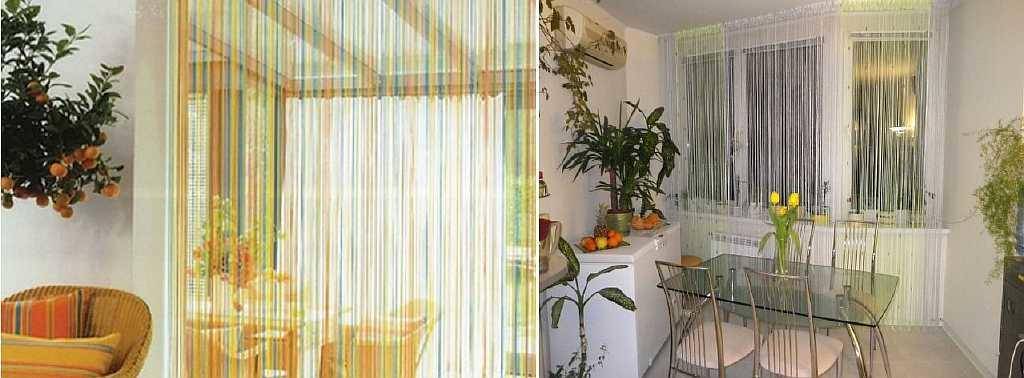 На фото – нитяные шторы для кухни: