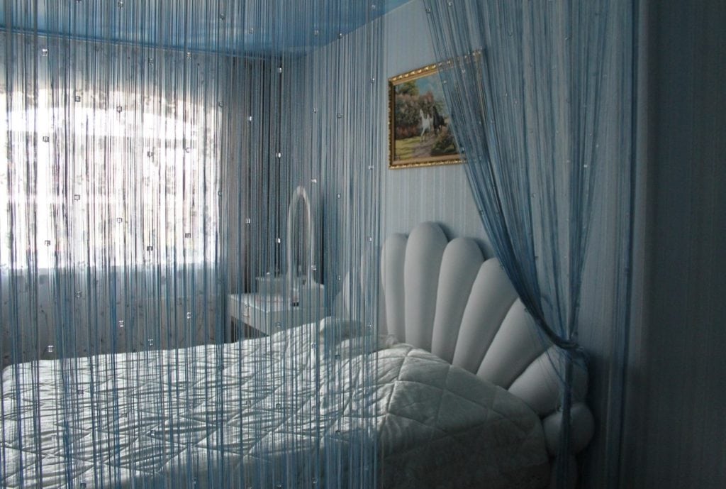 Зонирование пространства с помощью нитяных штор