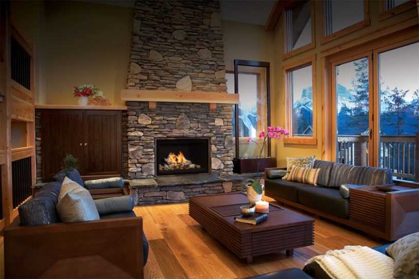 Наличие камина в помещении предполагает использование самых свежих идей и тенденций в стильном оформлении гостиной. Можно выбрать современный стиль хай-тек или элегантную классику в теплых тонах массива дерева.