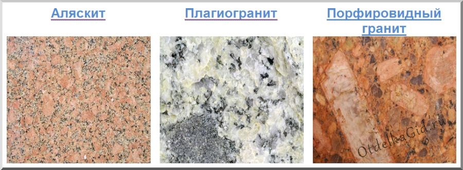 - Порфировидный гранит. Отличается от аляскита присутствием вкраплений.