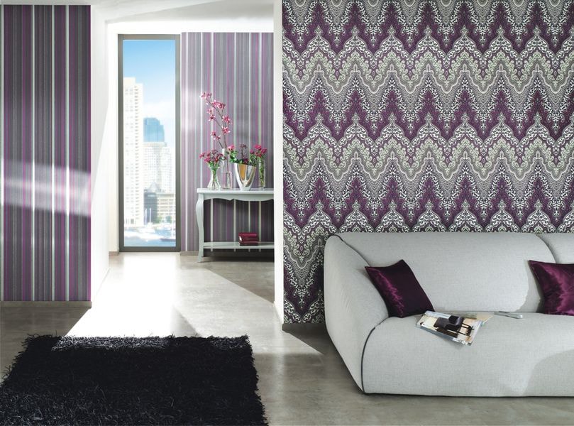Например, фиолетовый. Материалы такого цвета очень роскошно смотрятся в интерьере. Но следует помнить, что неправильное использование загадочного и экзотичного фиолетового может привести к обратному эффекту от ремонта, и помещение будет выглядеть не так, как задумывалось заранее. Применять таких обоев палитру следует дозировано. Лучше всего выделить ими одну зону для наклеивания, например, за диваном в гостиной.
