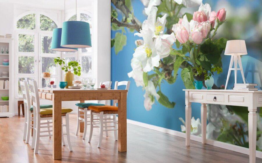 Альтернативное решение – водоотталкивающий верхний слой на бумаге с повышенной плотностью. Для размещения идеально подходит зона расположения обеденного стола. Они могут полностью покрыть стенку, или ее фрагменты.