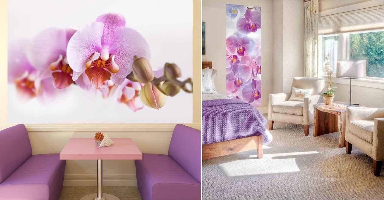Если нет возможности содержать в доме живые растение, это не повод отказываться от цветка. Есть много других вариантов использования орхидеи в интерьере. Один из них — приобрести фотообои с изображением растения. Особенности применения фотообоев: