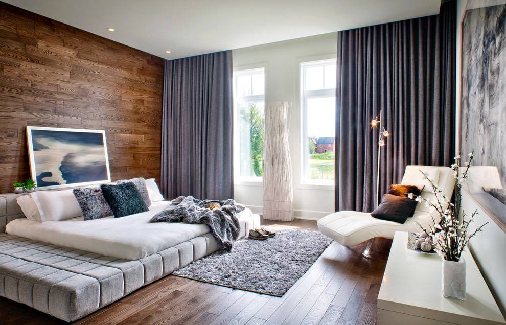 Выбирая шторы в спальню, лучше остановиться на портьерах из плотных, тяжелых тканей насыщенных тонов. Главная задача – обеспечить хорошую защиту от солнечного света.