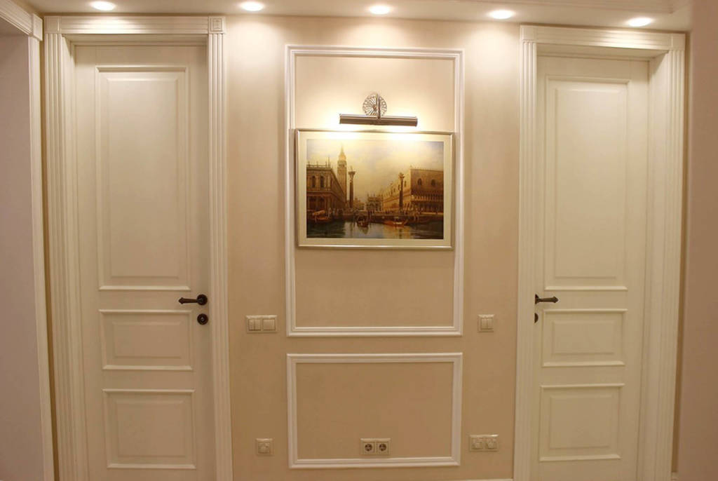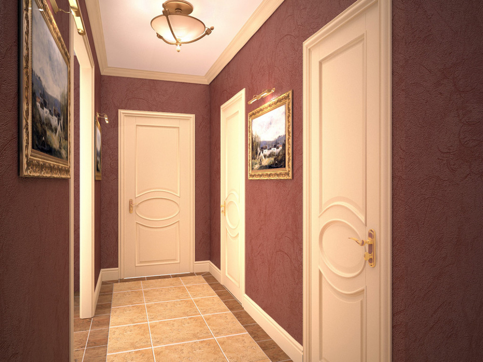 Делая ремонт в коридоре, не стоит недооценивать такой важный его этап, как выбор полотен для стен. Неудачный выбор может свести на нет все ваши предыдущие старания. К примеру, не стоит приобретать шпалеры с текстурой темного камня или кирпича, так как они плохо сочетаются со светлыми дверьми.