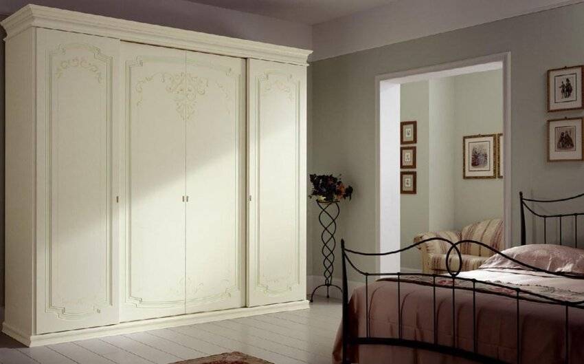 Лучше выбирать модели шкафов с распашными дверями и красивой «короной» с ненавязчивой росписью и орнаментами.
