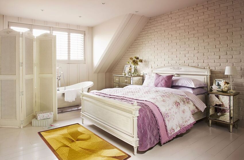 Мансарда – идеальное место для создания спальни в стиле прованс. В таком помещении обычно много больших окон и нет дорогой отделки.
