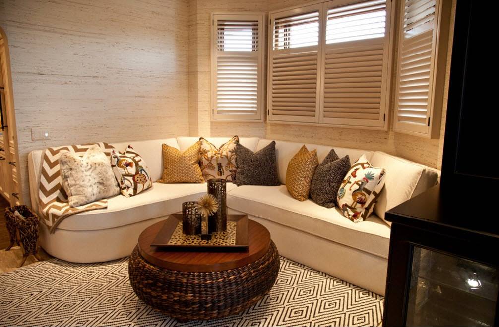 - Бежевый (подходит для различных стилевых направлений и хорошо комбинируется с большинством оттенков, особенно удачными станут сочетания с белым, коричневым и золотистым);