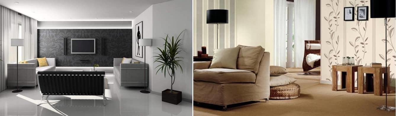 Стиль оформления интерьера станет главным подсказчиком того, какие обои подобрать для зала. Популярностью пользуются следующие решения: