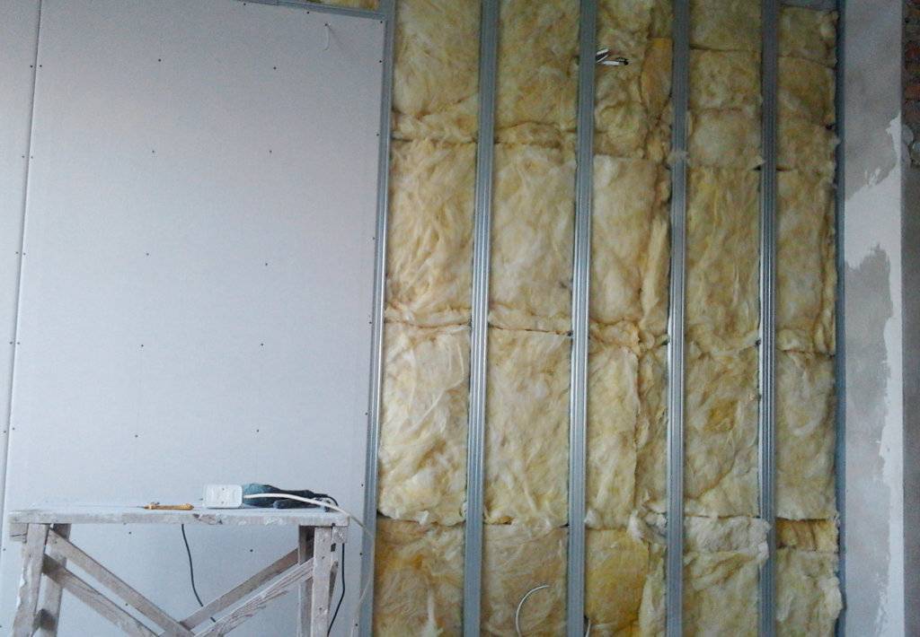 Иногда без дополнительной изоляции в сооружении не обойтись, особенно если перегородка не декоративная. Монтаж изоляционных материалов проводится тогда, когда с одной стороны деревянного каркаса выполнена обшивка гипсокартоном. Оптимальным материалом изоляции считается минеральная вата и вспененные материалы.