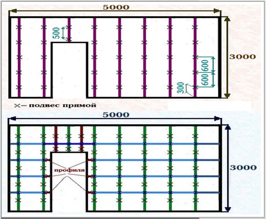 Для создания нестандартных форм и многоуровневых потолков выбирают преимущественно металлический профиль. Как собрать обрешетку под гипсокартон для потолка: