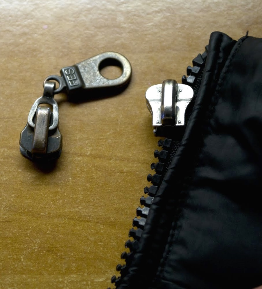 Всему виной ненадёжный бегунок, который в самый неподходящий момент вылетает из гнезда. Это никак не связано с качеством молнии: такое может произойти как с пластмассовыми, так и с железными зубьями.