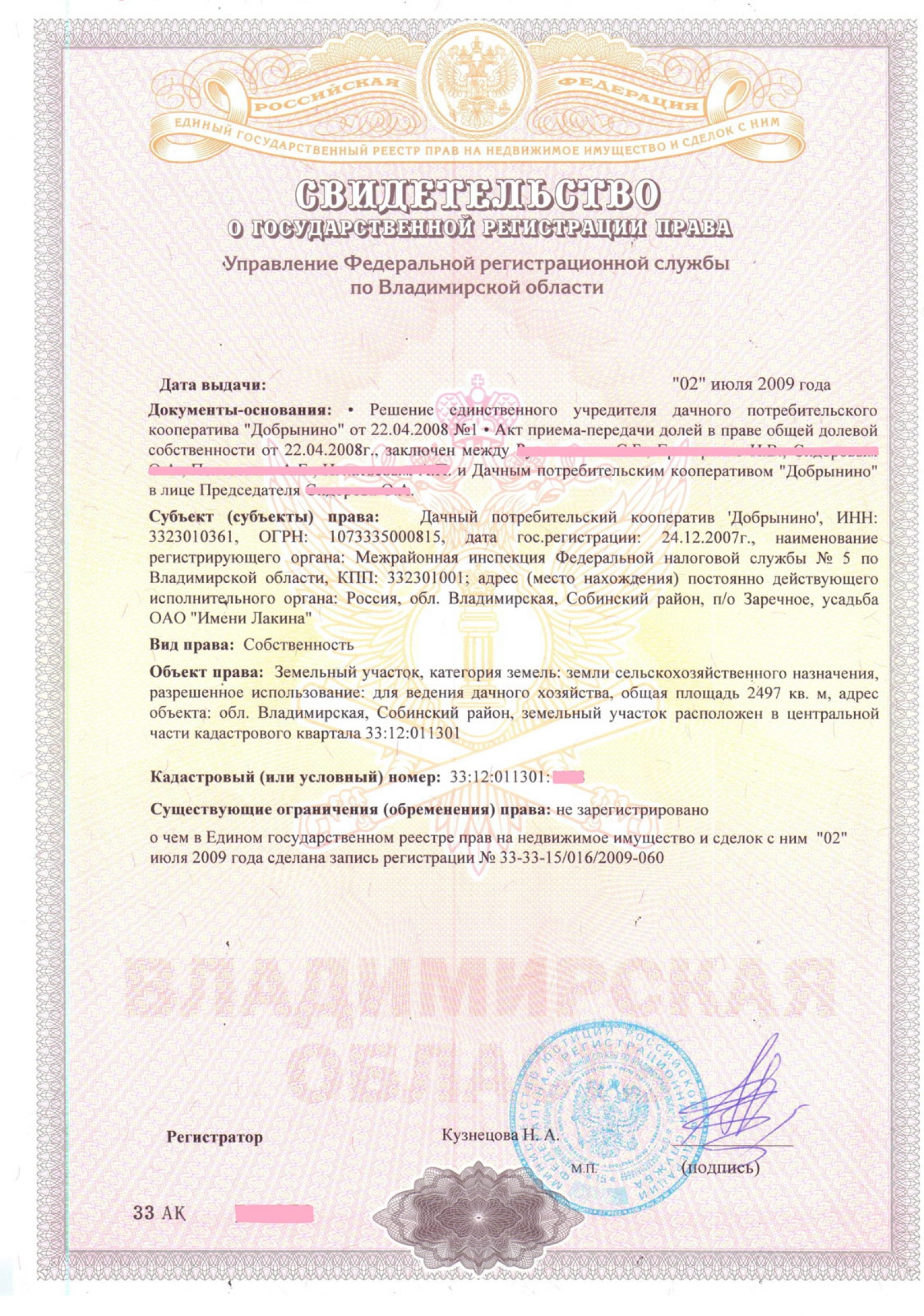 Внимание: если надел входит в уставной фонд кооператива, то потребуется разрешение такового на оформление