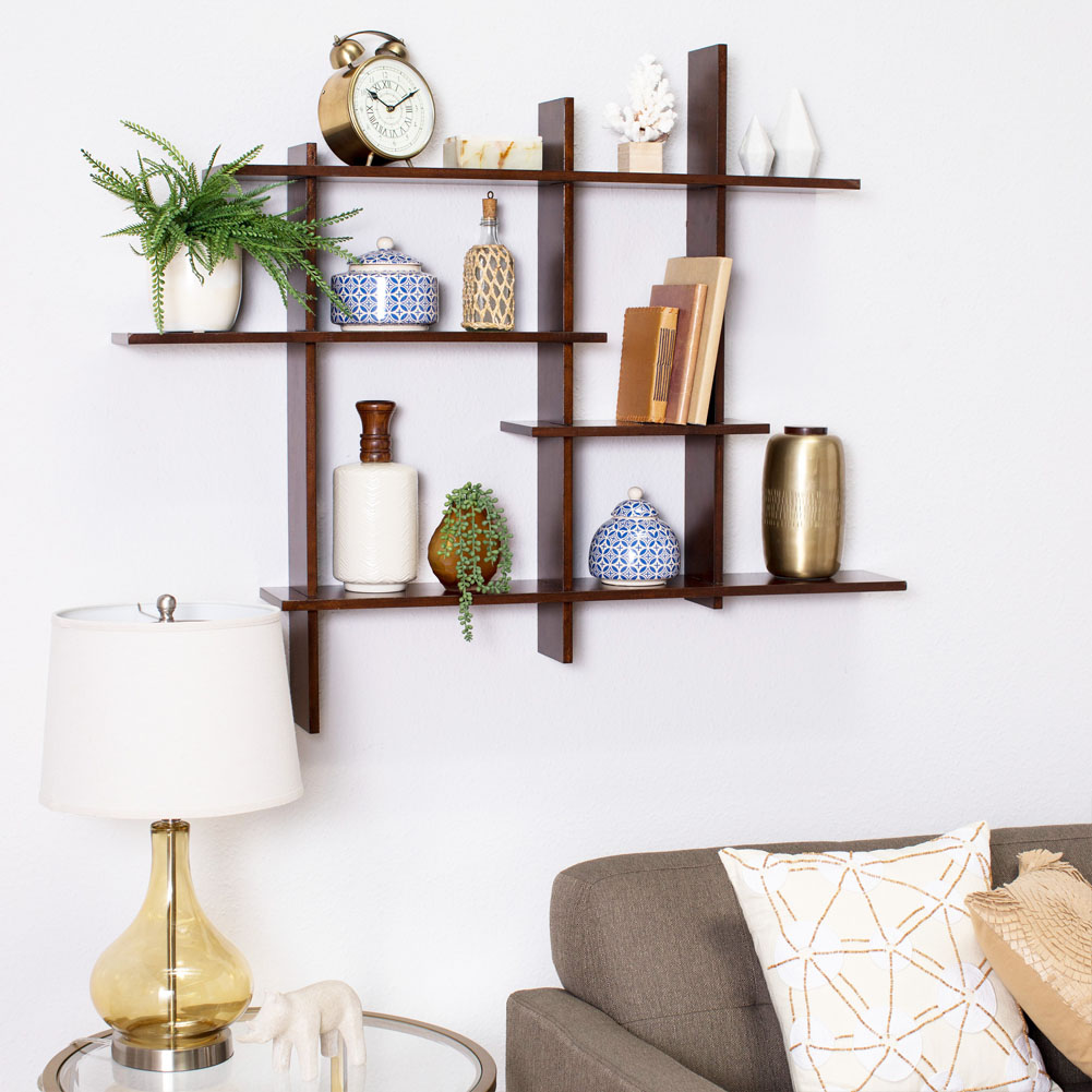 Но и здесь важно продумать, как лучше расположить конструкции, чтобы стена выглядела гармонично, а не хаотичным нагромождением.