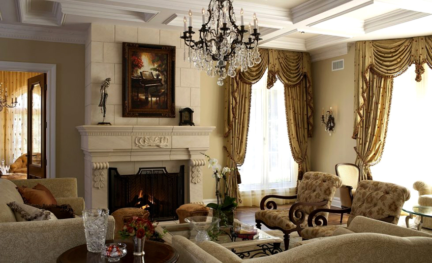 Декорирование штор для зала ламбрекенами на жесткой основе