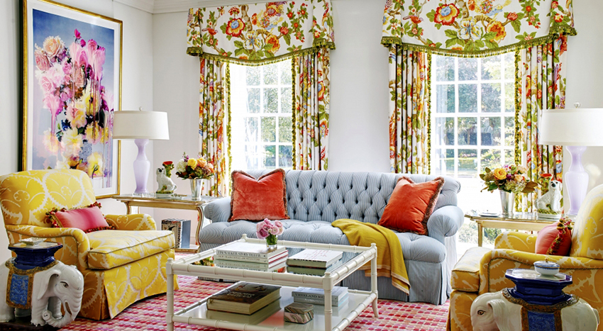 - Не использовать материал с цветочным принтом в помещении с цветочными обоями. Подобные полотна целесообразно применять только при однотонных стенах.