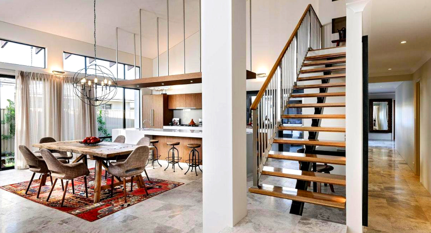 Вид лестницы в частном доме или двухэтажной квартире следует продумать еще на этапе строительства или проведения ремонта. При обустройстве пространства нужно понимать, что лестница – конструкция массивная, занимающая видное место в помещении