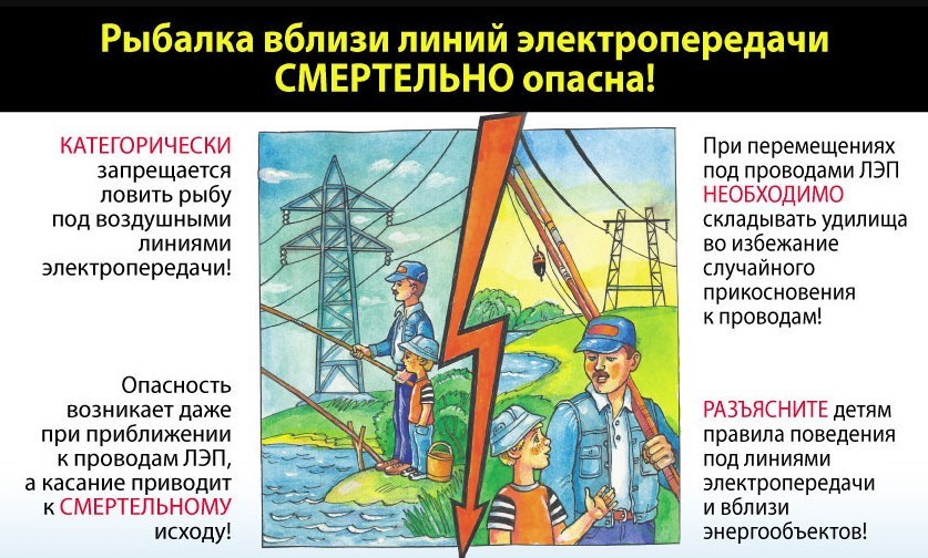 Кстати, важно знать, что рыбачить возле ЛЭП категорически запрещено. И если возле вашей дачи находится озеро с рыбой, а рядом опасные линии электропередач, то откажитесь от отдыха с удочкой.. Рыбачить нельзя