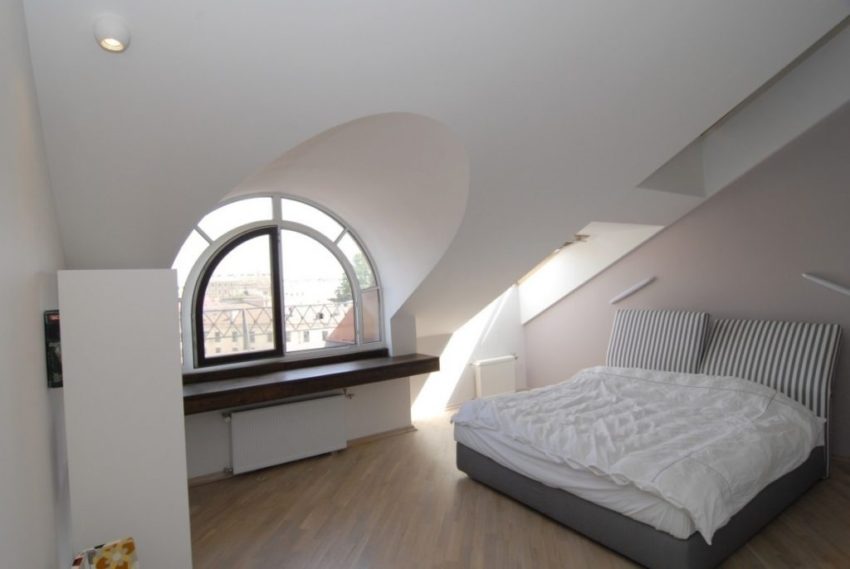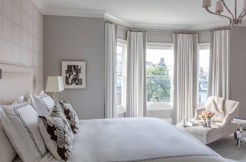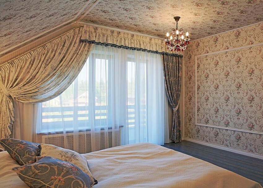 Наличие полукруглых окон является украшением спальни, которое важно правильно оформить, чтобы сохранить шарм помещения