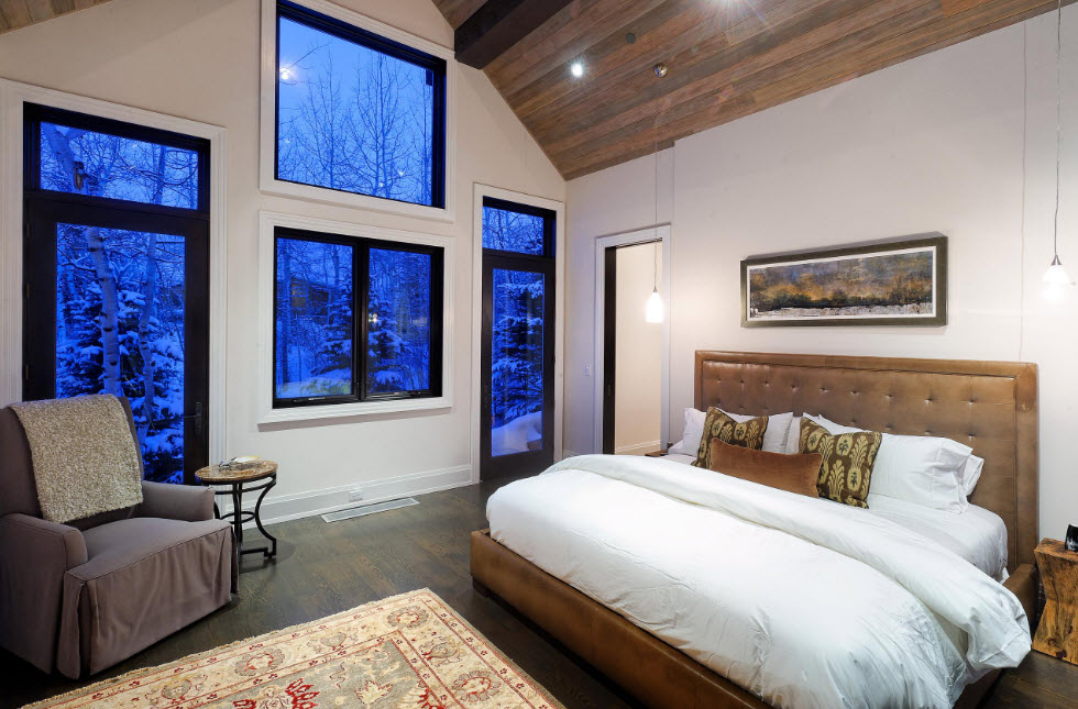 При оформлении системы, состоящей из двух и более оконных комплексов, следует тщательно продумать дизайн интерьера спальни