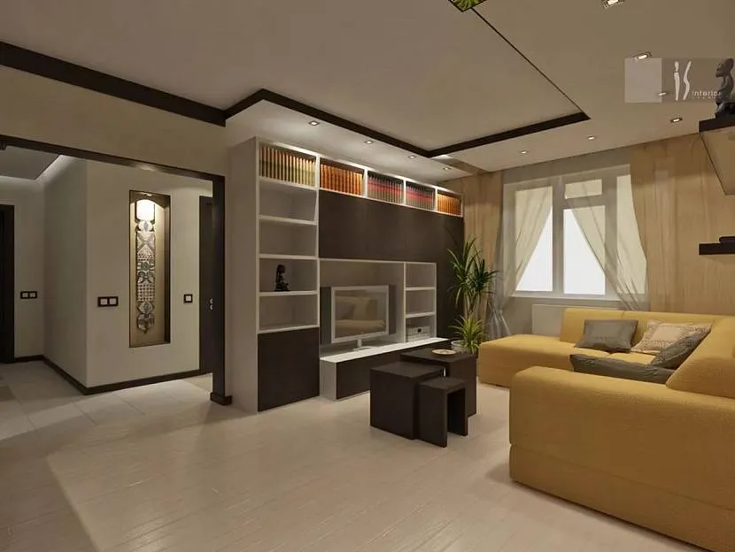 Помещение можно разделить на отдельные зоны с помощью современных осветительных приборов. Особенно удобны в этом плане светодиодные подсветки. При наличии такого освещения можно отказаться от классической огромной люстры.
