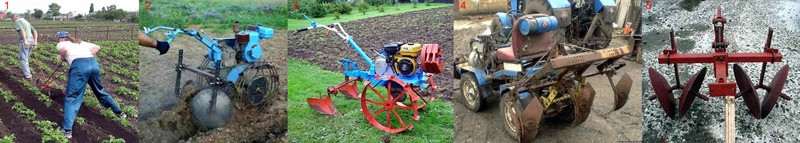 Ручные и автоматизированные окучники можно подразделить по следующим видам:
