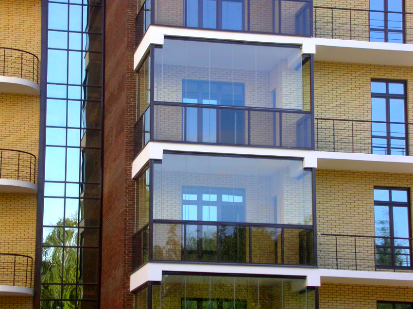 Застекленный балкон может иметь рамную или безрамную конструкцию
