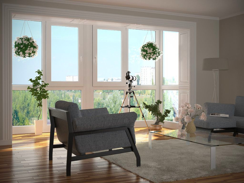 - Много света (благодаря размеру стекла) – меньше средств уйдет на дополнительное освещение в комнате.