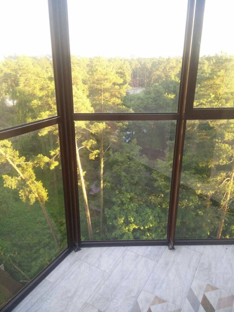 Толщина рамы у такой конструкции очень мала, она практически незаметна, не препятствует естественному освещению балкона, что бесценно, когда окна выходят на теневую сторону здания.