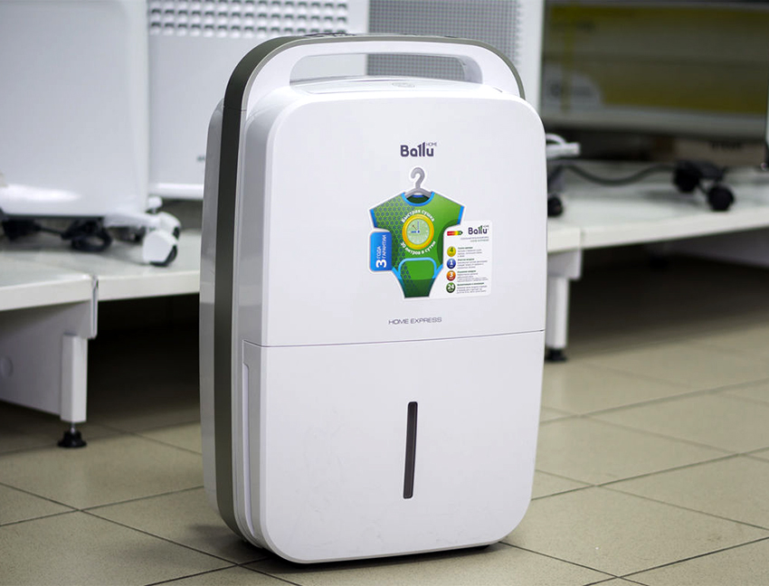 Для того, чтобы узнать уровень влажности, необходимо воспользоваться гигрометром. В большинстве случаев достаточно осушителя с производительностью до 20 л/сут. Можно взять, например, недорогой Ballu BDH-20L, способный обслужить до 24 м2 площади.