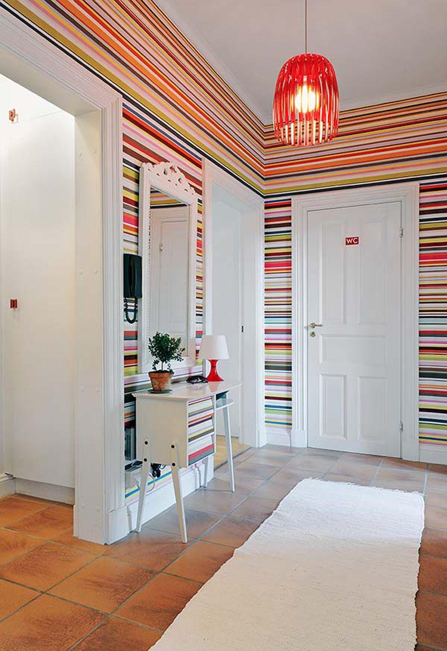 В широком коридоре (8-10 кв. м и более) можно применить любые цвета и оттенки, однако их не должно быть много. Лучше предпочесть 2-3 цвета, хорошо сочетающихся между собой. Лучше избегать контрастных оттенков, поскольку они визуально уменьшат пространство и создадут гнетущий эффект.