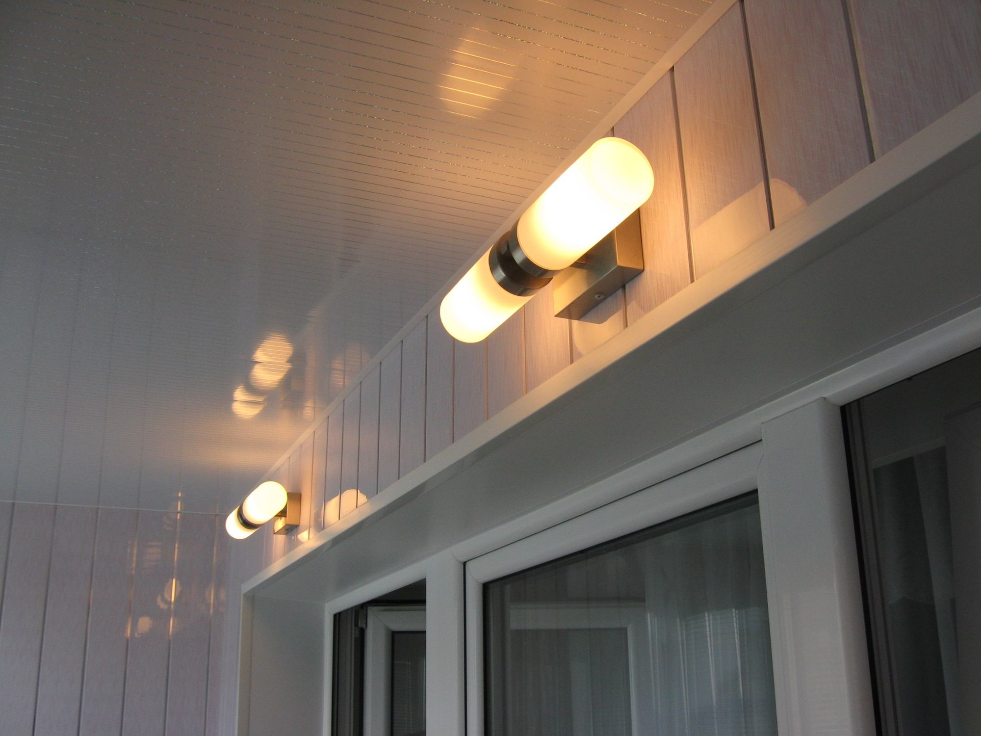 - установка линейных потолочных светильников – по всей длине балкона или ближе к его центру;