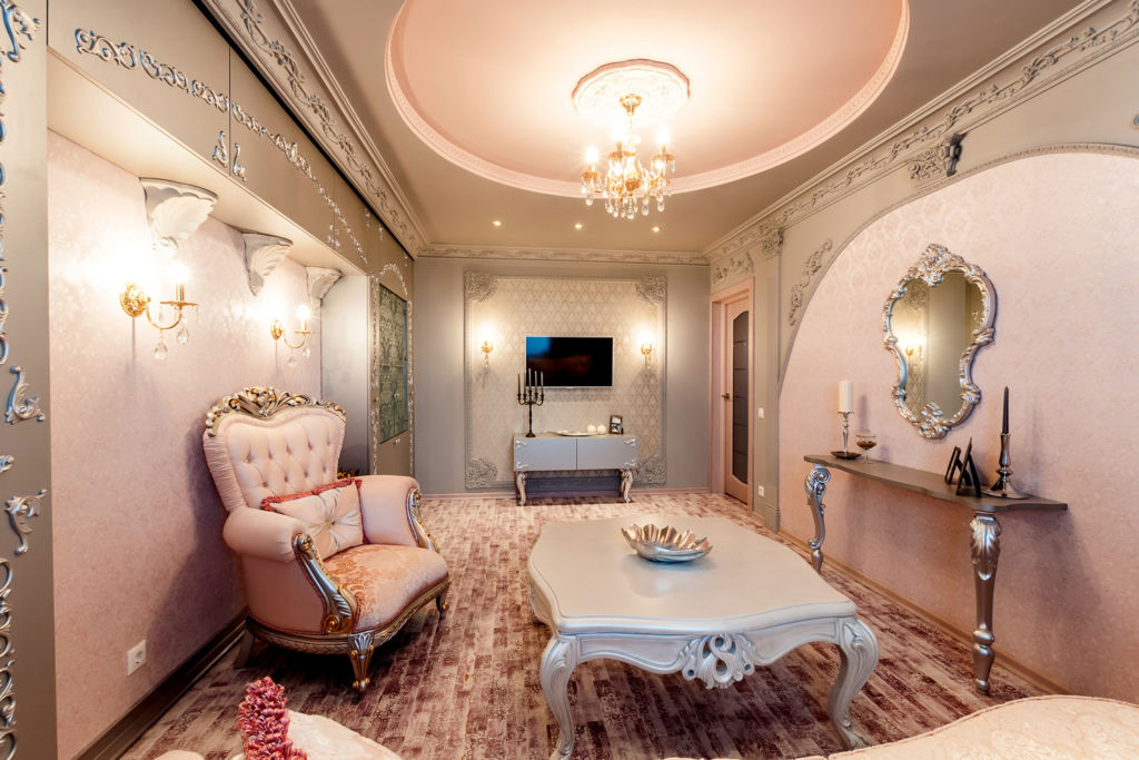 Освещение в самой большой комнате можно оформить, применив шикарную люстру. Но, перед тем как продумать дизайн, следует учесть некоторые моменты: