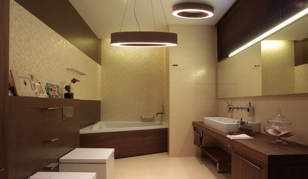 Главное правило размещения источников света заключается в том, чтобы освещение равномерно распределялось по всем зонам ванной комнаты.