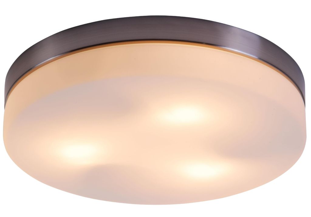 - Обычный потолок – лучше всего использовать плафон, который защитит лампу от попадания влаги. Конструкция крепится на потолок или стену с помощью металлических крепежей.
