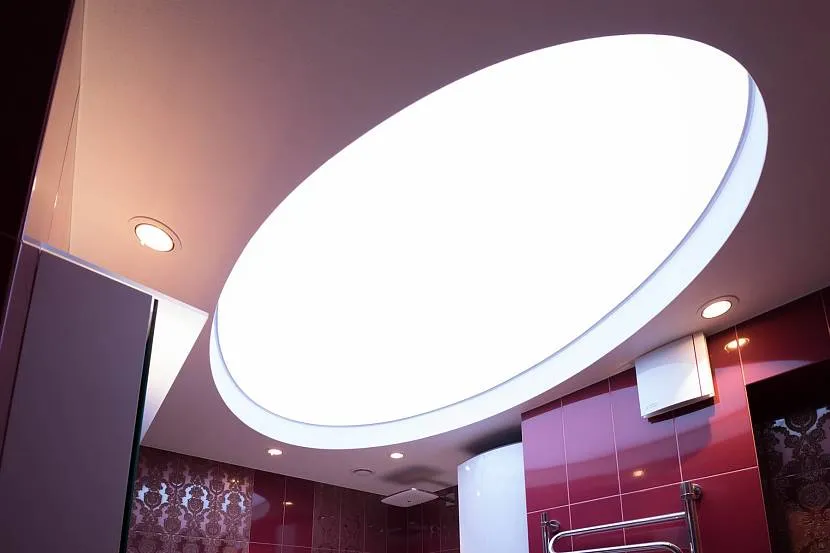 Имитация дневного освещения в натяжном потолке ванной комнатыИсточник potolkikaluga.ru