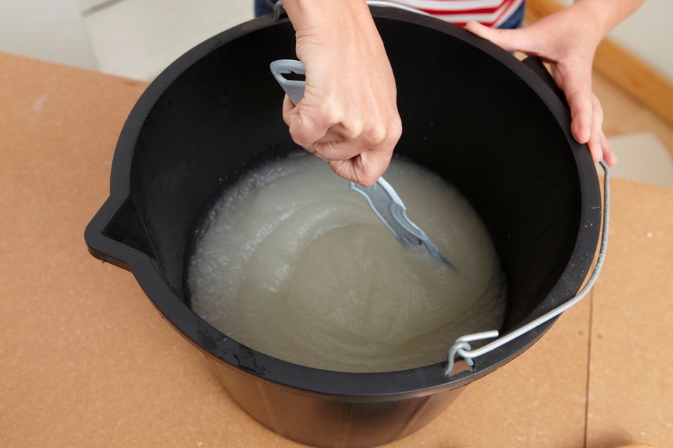 Размешивать клей лучше дрелью с миксером, в этом случае масса получится однородной и без комков. Далее клею необходимо 5 минут после первого замеса отстояться для получения клеящихся свойств. После повторного размешивания он полностью готов к использованию.